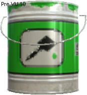 A paint can containing Green paint. Paint is used to color various crafted items, for example clothes or furniture.