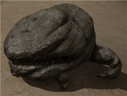 You may walk by this creature without noticing it, like a slab of rock, immobile to the moment you are within the range of its attack. A lunge, a snap of bone crushing jaws and all is once more silent.
