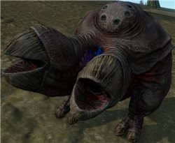 Heavily built, the males being almost globular, this is a more massive relative of the Snablesnots. Its rasping call is a common sound on Eudoria. Its succulent flesh is a popular dish in restaurants.