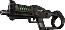 Being a traditional Death Ordnance Armament carbine, the Boneshatter launches small (but heavy) high velocity projectiles at the target. While these projectiles have highly penetrative capabilities, their design stops them from being effective at longer ranges.